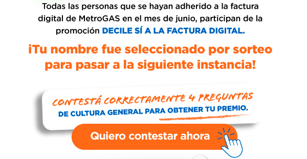 Ley 25.326 - Art. 14, inc. 3 - El titular de los datos personales tiene la facultad de ejercer el derecho de acceso a los mismos en forma gratuita a intervalos no inferiores a seis meses, salvo que se acredite un interés legítimo al efecto. Art. 27, inc. 3. El titular podrá en cualquier momento solicitar el retiro o bloqueo de su nombre de los bancos de datos a los que se refiere el presente artículo. Decreto 1558/01 - Anexo I - Art. 27, tercer párrafo. En toda comunicación con fines de publicidad que se realice por correo, teléfono, correo electrónico, internet u otro medio a distancia a conocer, se deberá indicar, en forma expresa y destacada, la posibilidad del titular del dato de solicitar el retiro o bloqueo, total o parcial, de su nombre de la base de datos. A pedido del interesado, se deberá informar el nombre del responsable o usuario del banco de datos que proveyó la información. Res. 14/2018 - Art. 3. La AGENCIA DE ACCESO A LA INFORMACIÓN PÚBLICA, en su carácter de órgano de Control de la Ley N° 25.326, tiene la atribución de atender las denuncias y reclamos que interpongan quienes resulten afectados en sus derechos por incumplimiento de las normas vigentes en materia de protección de datos personales. MetroGAS S.A., C.U.I.T. N° 30-65786367-6, domicilio G. Aráoz de Lamadrid 1.360, C.A.B.A. Si ya no deseás recibir más información vía correo electrónico hacé clic acá: Cancelar suscripción. Más información en www.metrogas.com.ar. Por favor, no respondas a este mensaje, es un envío automático |