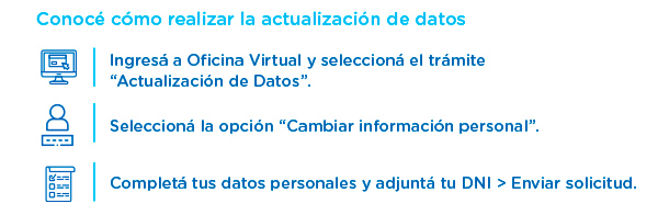 Es por este motivo que deberás realizar la Actualización de Datos (*) correspondiente (nombre, apellido y CUIT/CUIL), ya que la correcta identificación del titular del servicio te permitirá, en caso de corresponder, acceder a los regímenes de beneficios vigentes o los que en un futuro se pudieren implementar.